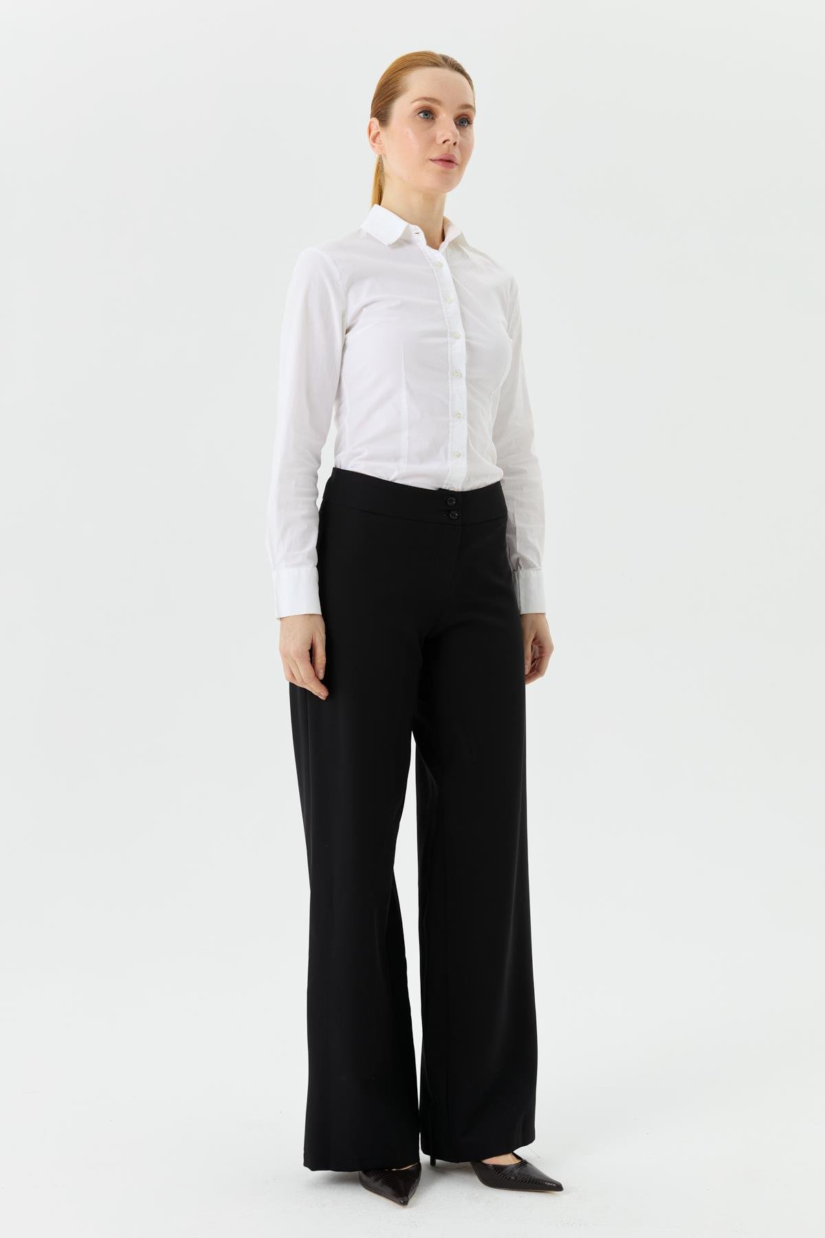 Doque Geniş Paça Krep Esnek Kumaş Kadın Pantolon Siyah 59017
