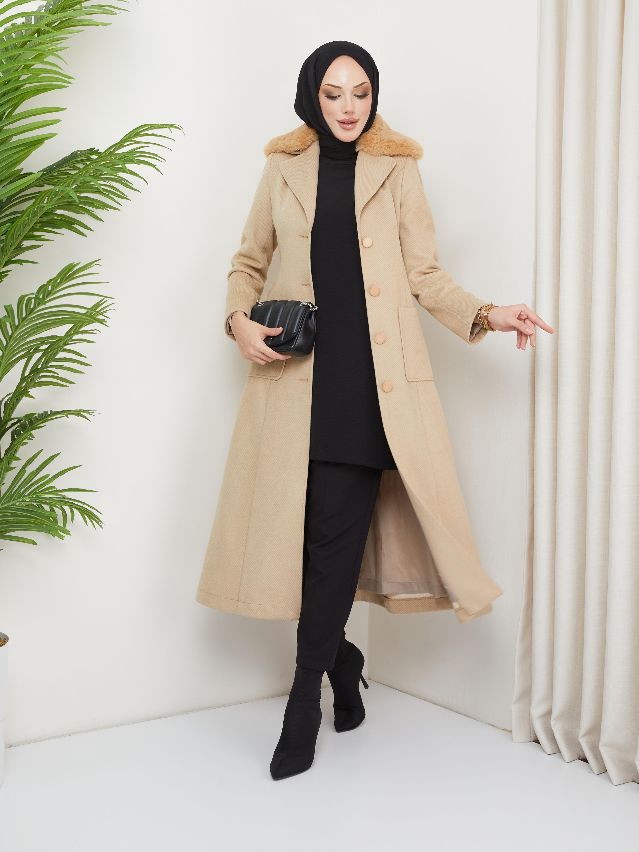 Doque Kadın Kaşe Kaban Yaka Kürklü Torbacep  57036