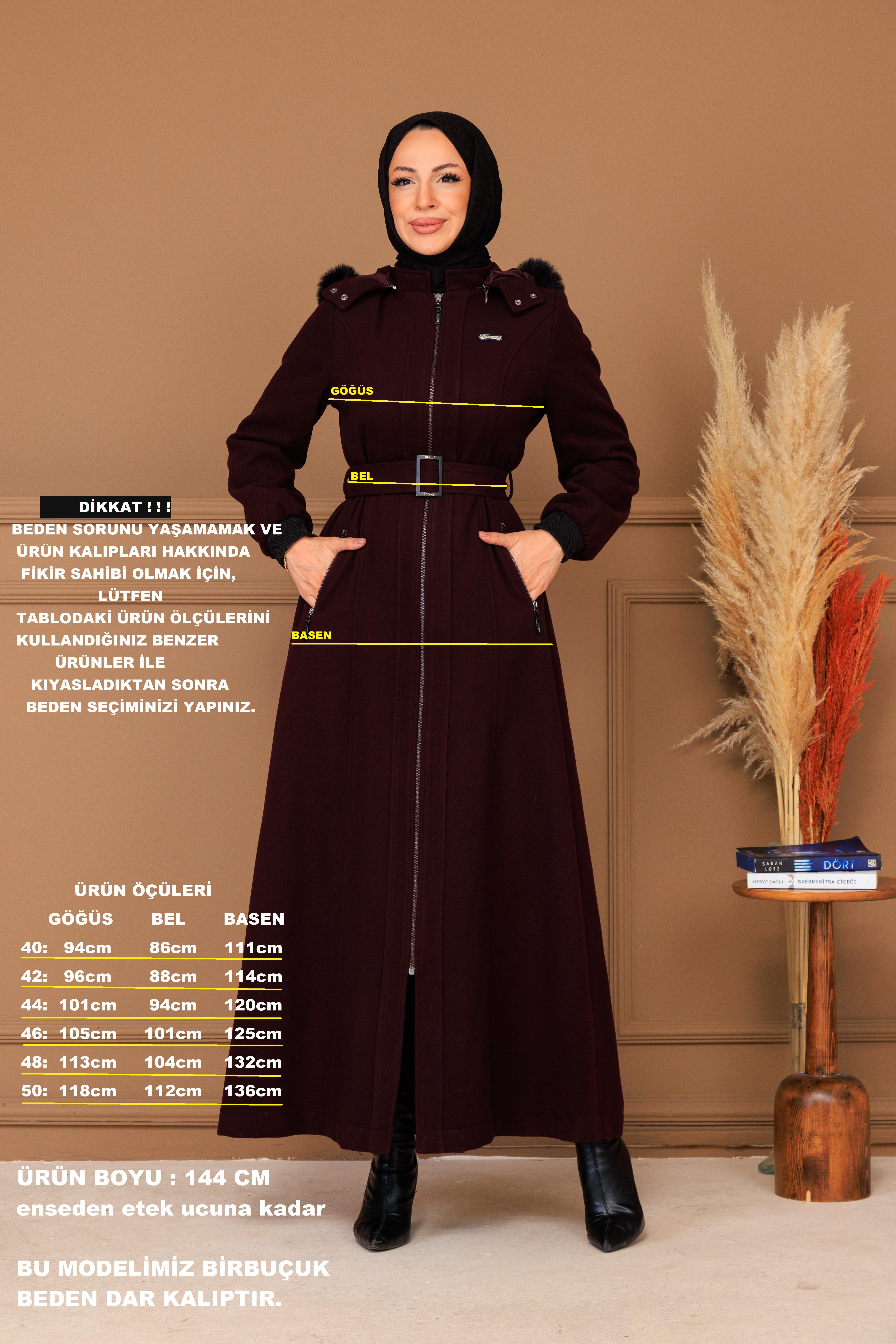Doque Kışlık Kadın Bordo Kaşe Pardesü Fermuarlı 58011
