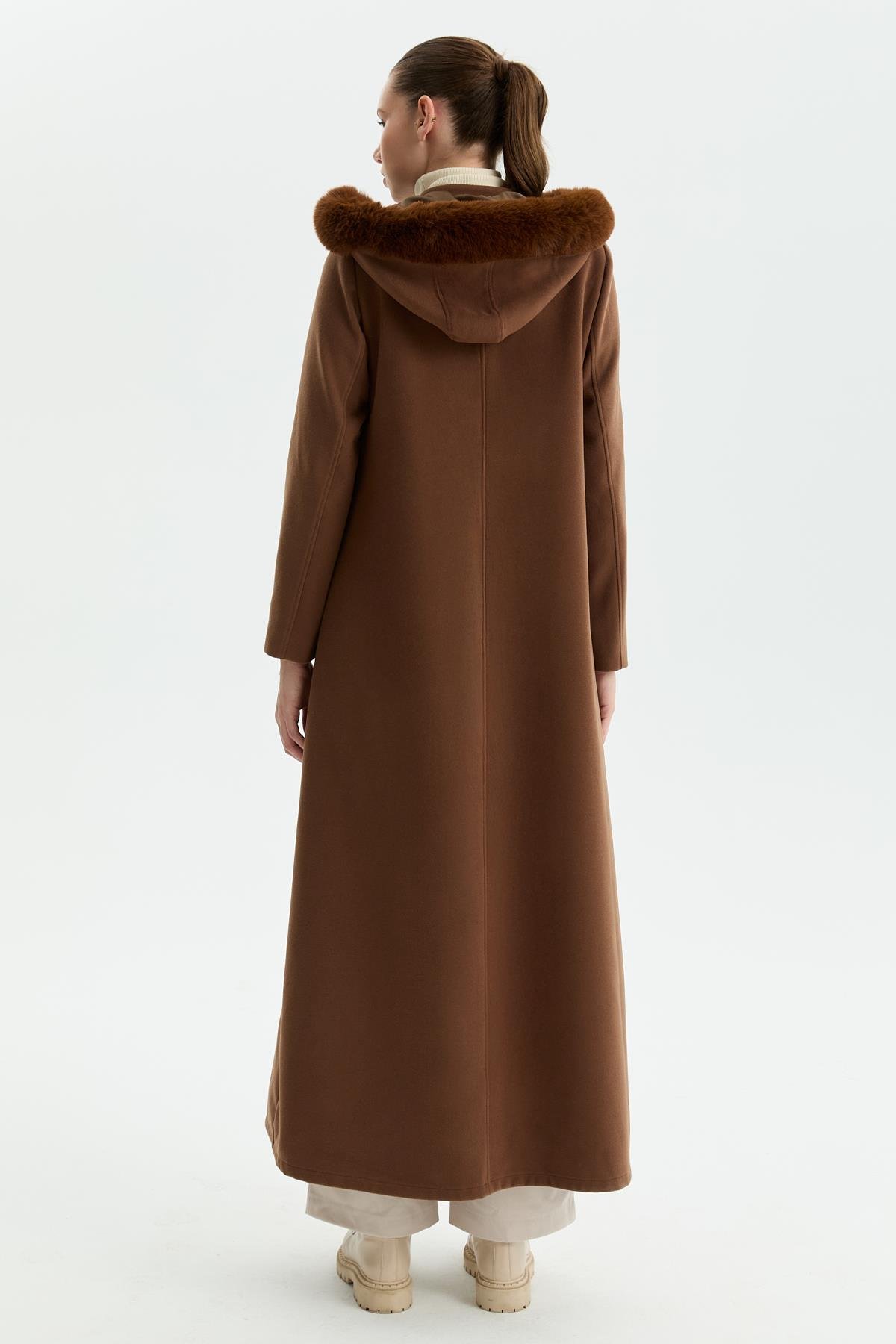 Günay Kraca Kışlık Kaşe Kadın Pardesü Kloş A Kesim Fermuarlı Kahve 2601